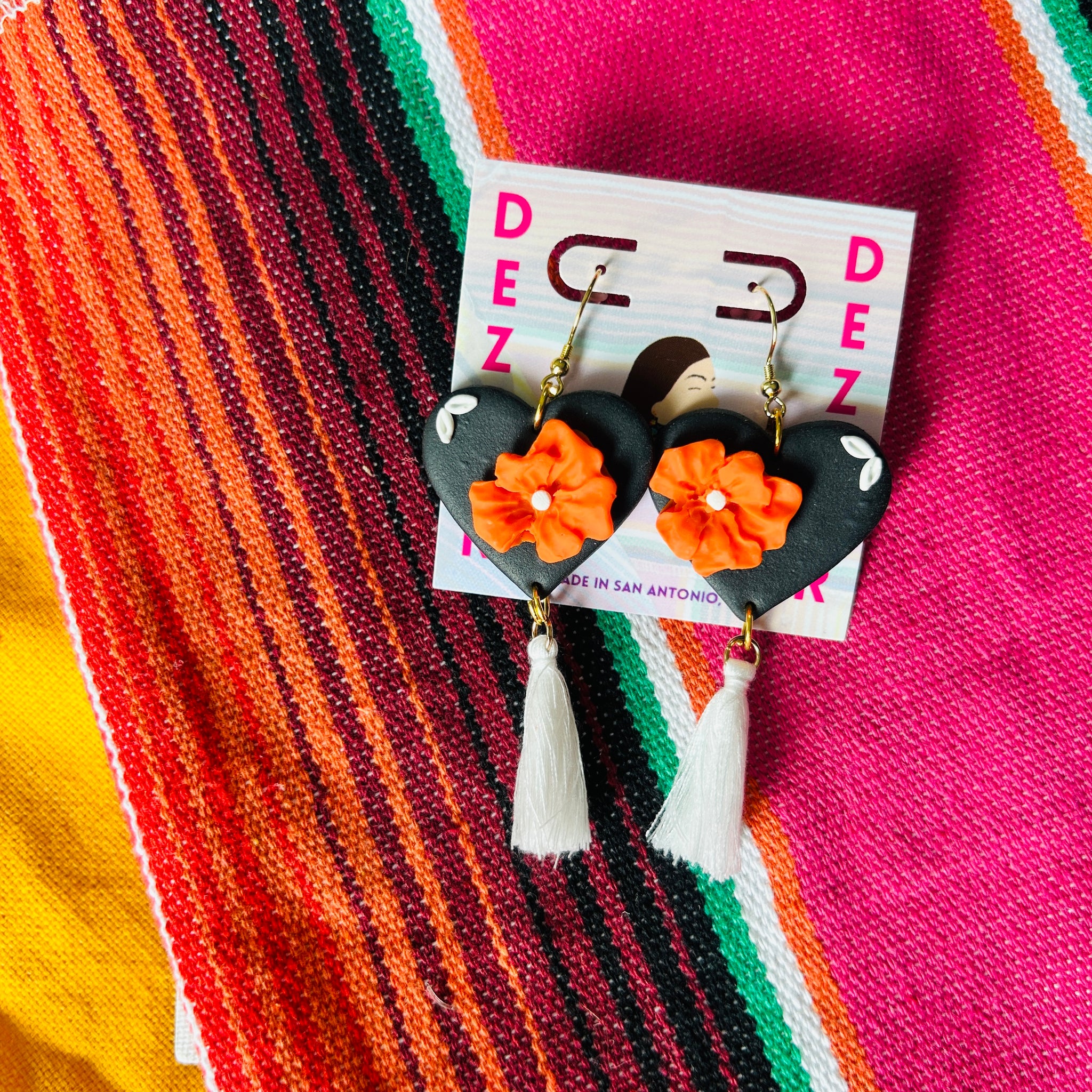 Beautiful colored hearts with florals and a tassel to match - UTSA/ Astros Inspired